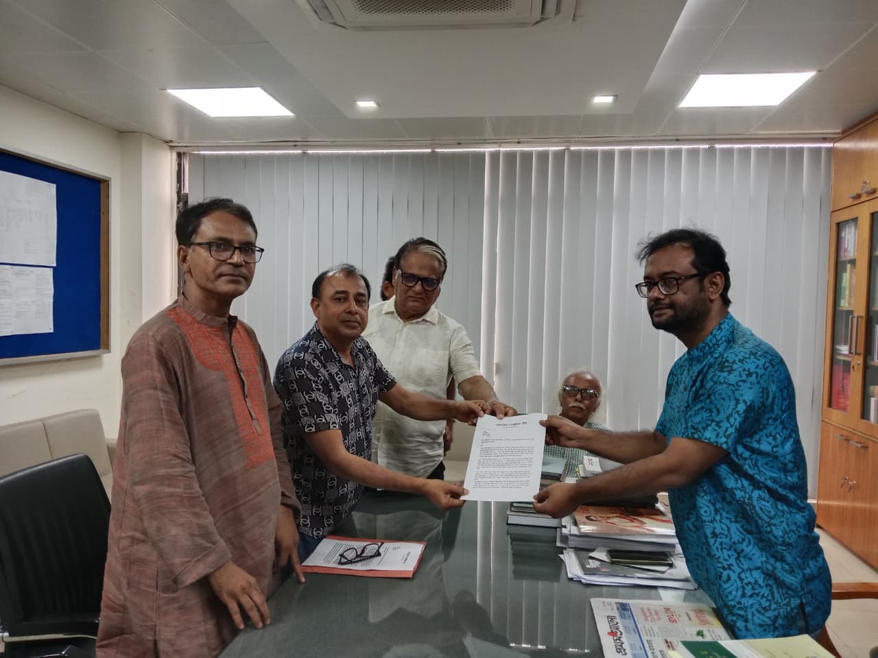 বইমেলা যথাসময়ে আয়োজনের দাবিতে সমাবেশ ও স্মারকলিপি পেশ