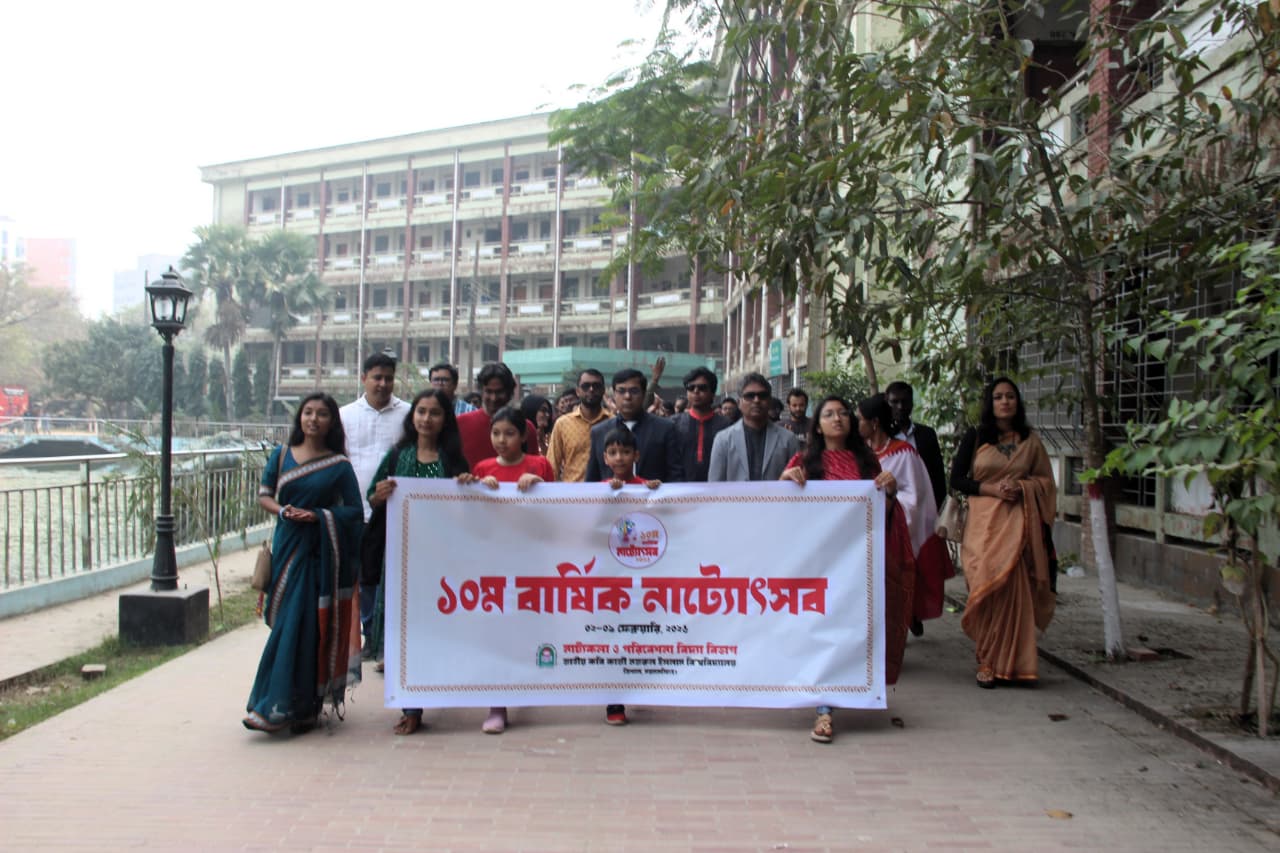 নাট্যোৎসব উপলক্ষে এদিন দুপুরে একটি বর্ণাঢ্য শোভাযাত্রা বের করা হয়। শোভাযাত্রাটি বিশ্ববিদ্যালয়ের নতুন কলা ভবন থেকে শুরু হয়ে ক্যাম্পাসের প্রধান প্রধান সড়ক প্রদক্ষিণ করে পুরোনো কলা ভবনে এসে শেষ হয়।