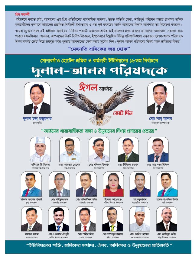 সোনারগাঁও হোটেল শ্রমিক ইউনিয়নের সভাপতি দুলাল, সাধারণ সম্পাদক আলম