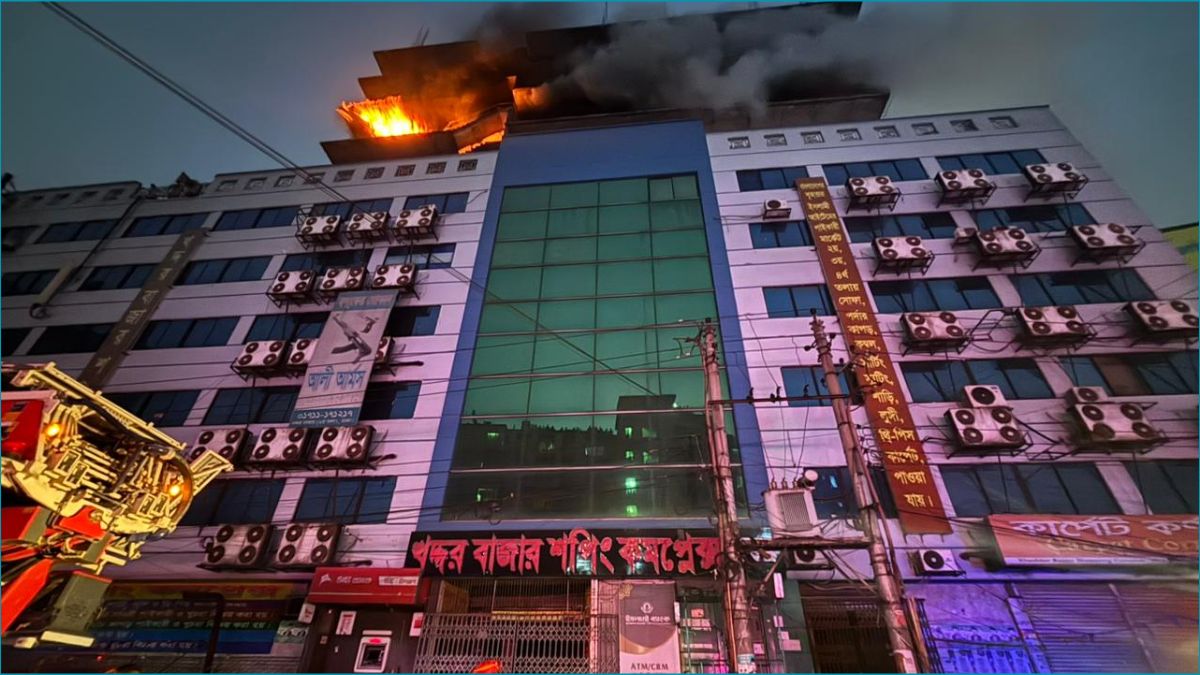 রাজধানীর গুলিস্তান ‘খদ্দর বাজার শপিং কমপ্লেক্স’-এ অগ্নিকাণ্ডের ঘটনা ঘটেছে। ছবি : বাংলাদেশের খবর