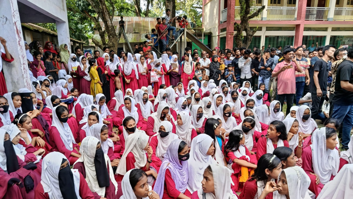 শিক্ষার্থীরা প্রধান শিক্ষকের অপসারণ দাবিতে ক্লাস বর্জন করে আন্দোলন করে। ছবি : বাংলাদেশের খবর