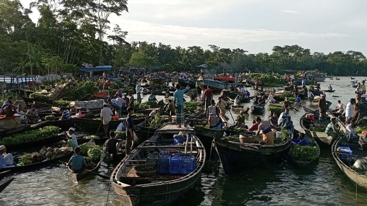 পিরোজপুরের নাজিরপুর উপজেলার বেলুয়া নদীর বৈঠাকাটা ভাসমান হাটে, প্রতি হাটে লেনদেন হয় কোটি টাকার। ছবি : বাংলাদেশের খবর