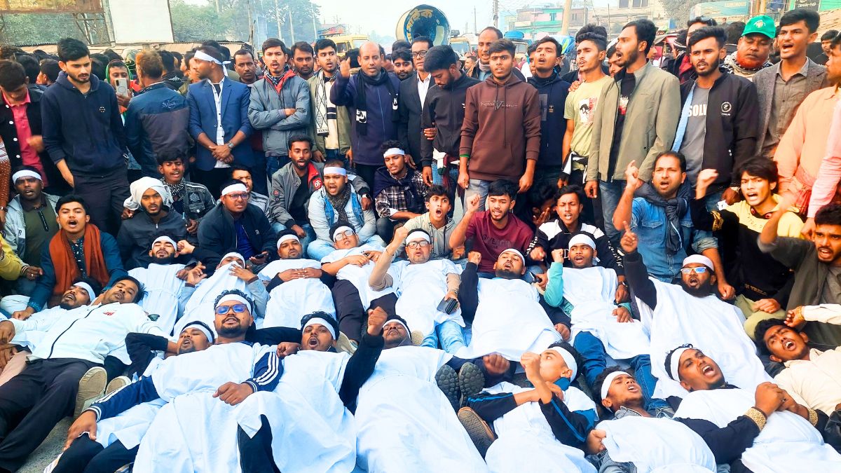 ঝিনাইদহ-৪ আসনে রাশেদ খাঁনকে অবাঞ্চিত ঘোষণা, কাফনের কাপড় পরে বিএনপি নেতাকর্মীদের বিক্ষোভ