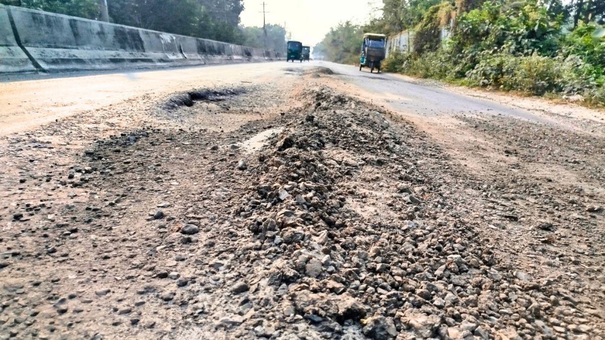 শিবালয়ে মহাসড়কের বড় গর্ত, যানবাহন চলাচলে মারাত্মক ঝুঁকি