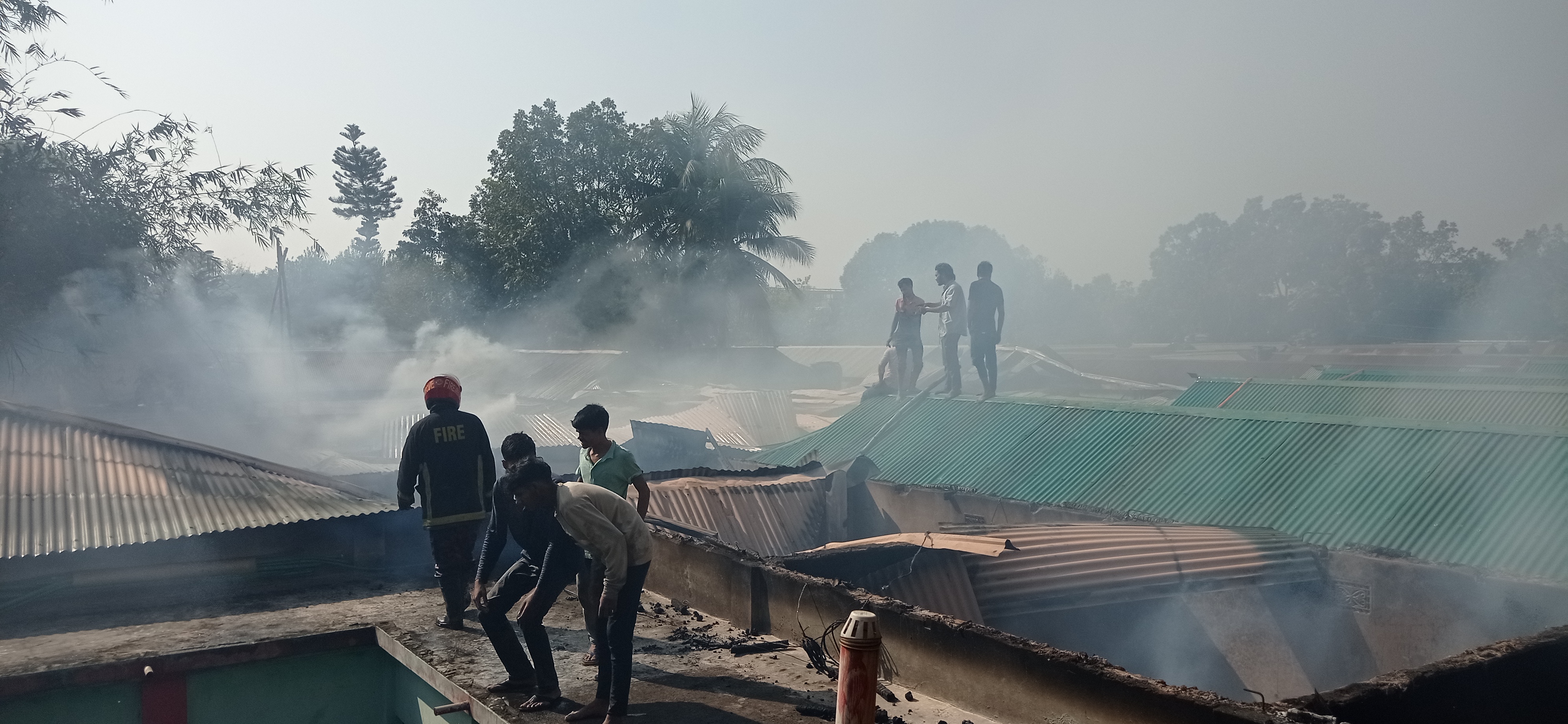 আরেক মালিক নুরুল ইসলাম জানান, পাশের বাড়ি থেকে আগুন এসে তার ১০টি ঘর পুড়িয়ে দিয়েছে।