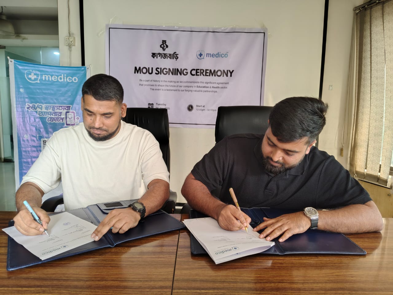 সমঝোতা স্মারক অনুষ্ঠানে কাগজবাড়ির পক্ষে উপস্থিত ছিলেন প্রতিষ্ঠানটির ব্যবস্থাপনা পরিচালক রেজোয়ান কবীর, পরিচালক জাহিদ আনোয়ার ও মো. শাহ আলম, এক্সিকিউটিভ অফিসার শাখিরুজ্জামান এবং লেখক ও সাংবাদিক হাসসান আতিক। মেডিকো বায়োর পক্ষে প্রতিষ্ঠানটির পরিচালক মো. মেশকাতুর রহমান বাঁধন, সিওও (পরিচালক) মো. নাজমুল আলম নোমানসহ অন্যরা উপস্থিত ছিলেন।