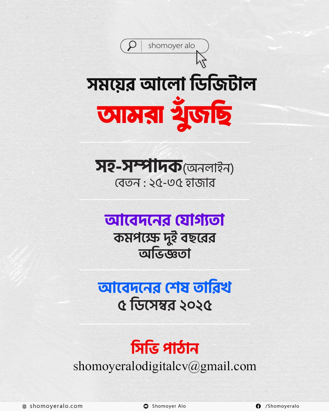 প্রার্থীদের shomoyeralodigitalcv@gmail.com -এই ঠিকানায় সিভি পাঠাতে হবে।