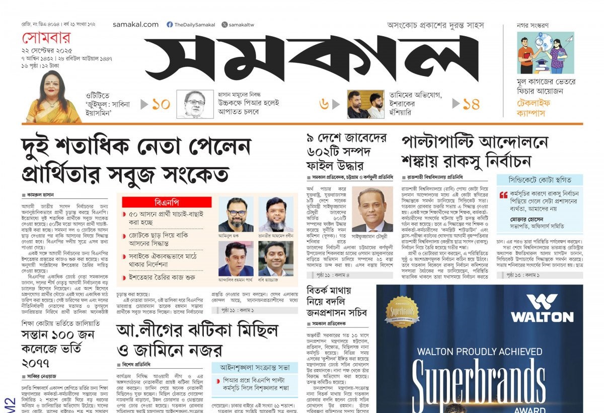 সমকাল প্রধান শিরোনাম করেছে, ‘দুই শতাধিক নেতা পেলেন প্রার্থিতার সবুজ সংকেত’