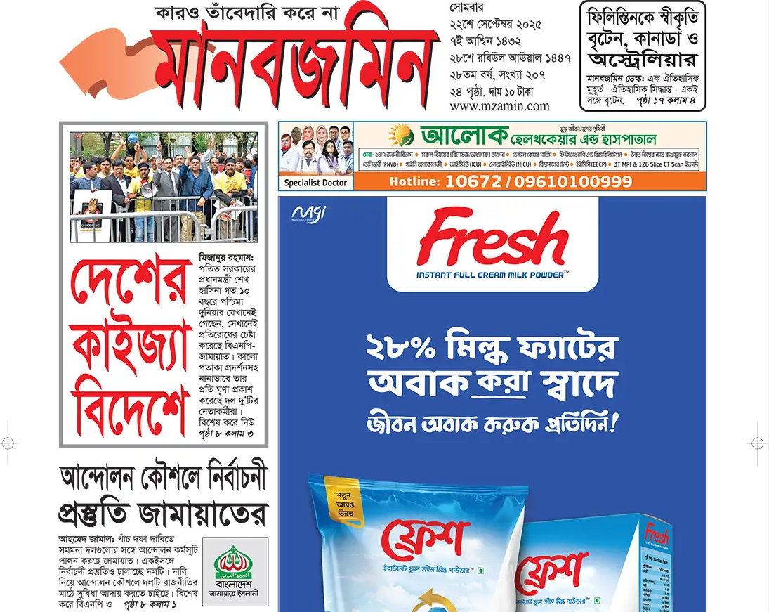 মানবজমিন প্রধান শিরোনাম করেছে, ‘দেশের কাইজ্যা বিদেশে’