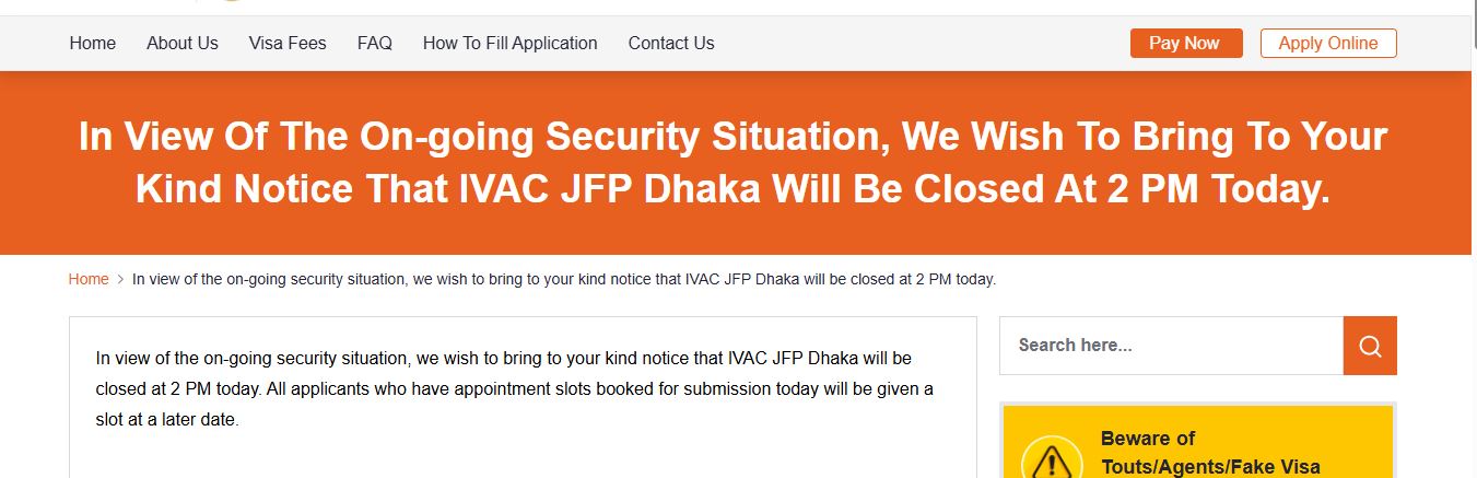 আইভ্যাকের বাংলাদেশে ওয়েবসাইটে প্রকাশিত বিজ্ঞপ্তিতে জানানো হয়েছে, আজ যেসব আবেদনকারীর অ্যাপয়েন্টমেন্ট ছিল, তাদেরকে পরবর্তীতে নতুন একটি তারিখে অ্যাপয়েন্টমেন্ট দেওয়া হবে।