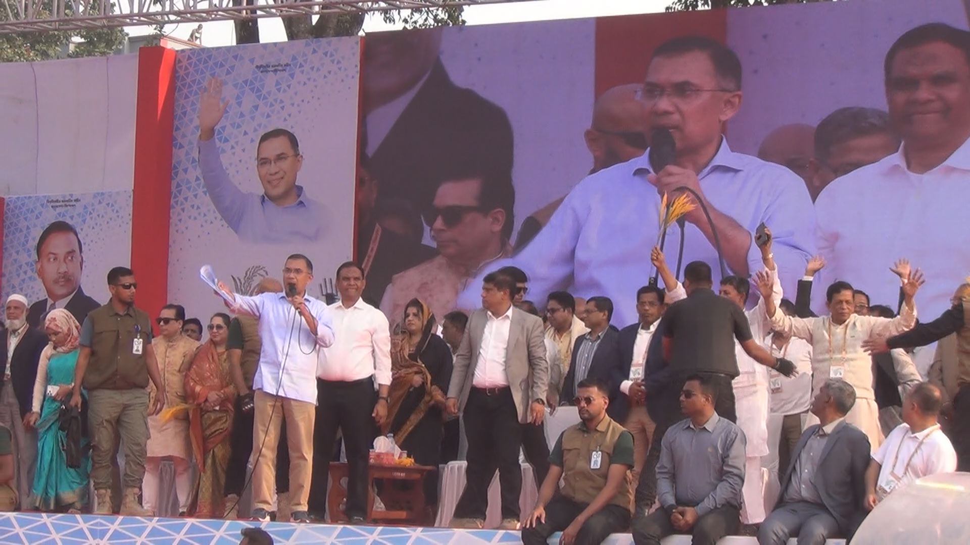 দুপুর ২টা ৪০ মিনিটে হেলিকপ্টারে করে ফরিদপুর স্টেডিয়াম মাঠে পৌঁছান তারেক রহমান। সেখান থেকে গাড়িবহরে সমাবেশস্থলে এসে দুপুর ২টা ৫৫ মিনিটে মঞ্চে ওঠেন। পরে দুপুর ৩টা ২১ মিনিটে তিনি বক্তব্য শুরু করেন।