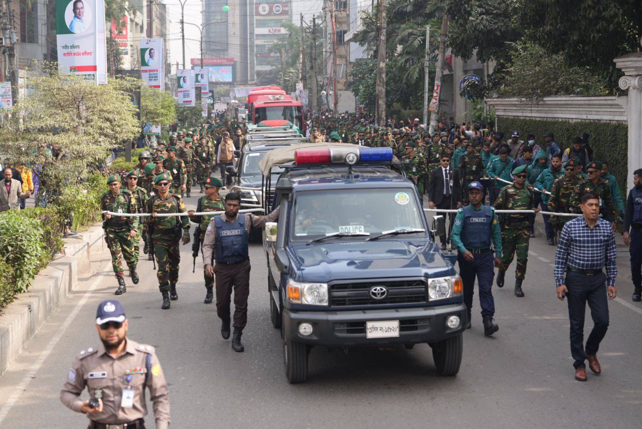 সাবেক প্রধানমন্ত্রী ও বিএনপি চেয়ারপারসন বেগম খালেদা জিয়ার মরদেহ কঠোর নিরাপত্তার মধ্য দিয়ে জাতীয় সংসদ ভবনের দক্ষিণ প্লাজায় পৌঁছেছে। লাল-সবুজ রঙের জাতীয় পতাকায় মোড়ানো একটি ফ্রিজার ভ্যানে করে তাকে বহন করা হয়। রাষ্ট্রীয় প্রোটোকল অনুযায়ী সেনাবাহিনী হিউম্যান চেইন তৈরি করে মরদেহটি আনা হয়।
