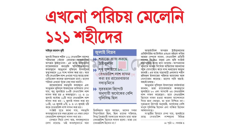 এখনো পরিচয় মেলেনি ১২১ শহীদের