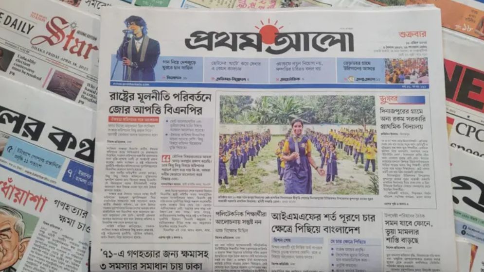 প্রথম আলোর প্রথম পাতায় বলা হয়েছে, সংবিধান সংস্কার নিয়ে জাতীয় ঐকমত্য কমিশনের সঙ্গে আলোচনায় অংশ নেয় বিএনপি। তারা স্পষ্টভাবে জানিয়েছে, রাষ্ট্র পরিচালনার মূলনীতিতে পরিবর্তনের প্রস্তাবে তারা একমত নয়।